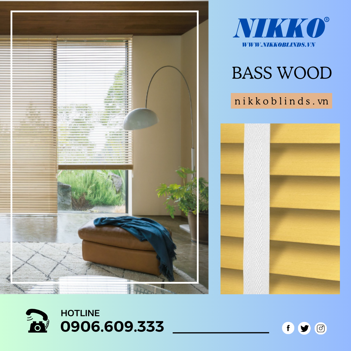 - Rèm gỗ BASS WOOD được làm từ gỗ tự nhiên có độ bền cao, thiết kế bề mặt nhẵn bóng với các đường vân gỗ nhẹ nhàng.